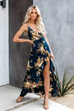 La coupe longue de cette robe met en valeur la silhouette féminine, tandis que les bretelles spaghetti offrent une belle part de liberté et de confort. Le style cache-coeur de cette robe est flatteur pour toutes les morphologies, en soulignant délicatement la poitrine et en créant une ligne harmonieuse.